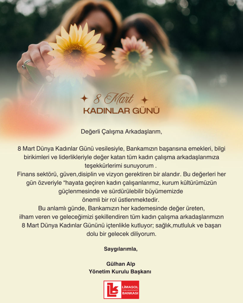 8 Mart Dünya Kadınlar Günü’ne ve diğer özel günlere önem veren Limasol Bankası’nda bu kez kadın konusu ele alındı… Devamını oku